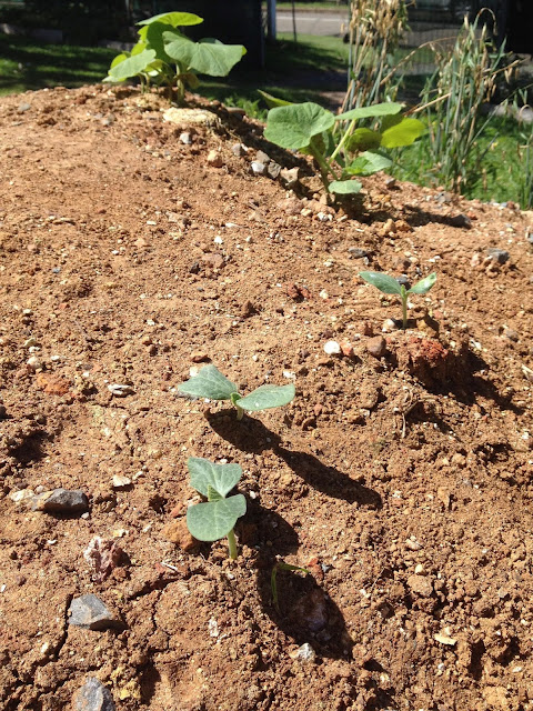 The other bonus is I now have a giant dirt mound.....and what do you do with that - plant some seeds of course! I have growing in my dirt mound flat leaf parsely, cape gooseberry and cherry tomatoes (self seeded from dirt that were dug up near the original plants) and I also popped in some seeds from my butternut pumpkins I grew earlier on in the season.